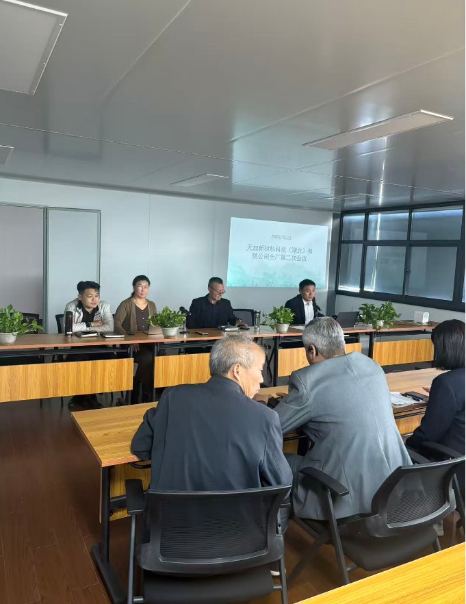 凝聚共识,聚力前行 | 天加新材料科技(湖北)有限公司召开2025年度全员大会为统一思想、明确方向,2025年10月23日,天加新材料科技(湖北)有限公司于行政办公楼三楼会议室隆重召开全员大会。公司管理层及全体员工齐聚一堂,共同回顾发展历程,剖析当下问题,擘画未来蓝图。本次大会不仅是对过去工作的深度复盘,更是迈向新征程的动员会。会议核心议程聚焦于:1、 问题导向,精准施策: 大会就当前运营中存在的关键问题进行了深入总结与分析,并提出了系统性的解决方案与优化措施。2、制度升级,保障发展: 会议正式发布了经过全面调整与完善后的公司管理制度,旨在以更科学的流程、更高效的机制,为公司的稳健发展保驾护航。“今天的每一分学习、努力与成长,都是铸就明天成功的坚实基石。” 会议号召全体同仁,面对前方的挑战,要并肩作战,无畏艰难。我们坚持以结果为导向,用行动兑现承诺,用实力创造价值。让汗水浇灌的梦想开花结果,用拼搏的精神书写属于天加新材料的传奇!不找借口,只找方法;不畏艰难,只争朝夕。 我们坚信,每一份平凡的付出,终将汇聚成奔涌向前的胜利洪流。全员一心,其利断金!让我们以此次大会为新的起点,凝聚共识,聚力前行,共同开创天加新材料更加辉煌的明天!